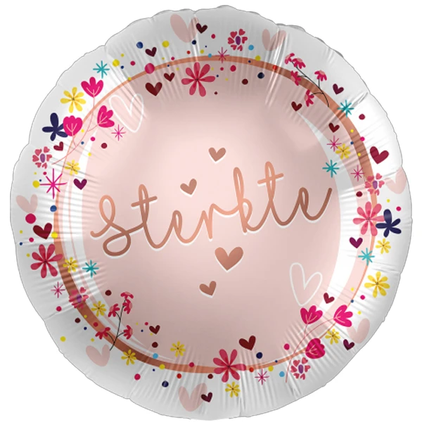 Deze 17 inch folie ballon van het merk Premioloon met 'Sterkte' opdruk heeft een doorsnede van circa 43 cm. De ballon is gemaakt van een lichtgewicht metallic folie waardoor deze gevuld met helium ongeveer één week blijft zweven. Opgeblazen is de ballon rond van vorm en aan twee zijden bedrukt. De ballon is verder voorzien van een zelfsluiter waardoor deze zichzelf afsluit wanneer de ballon volledig is gevuld.