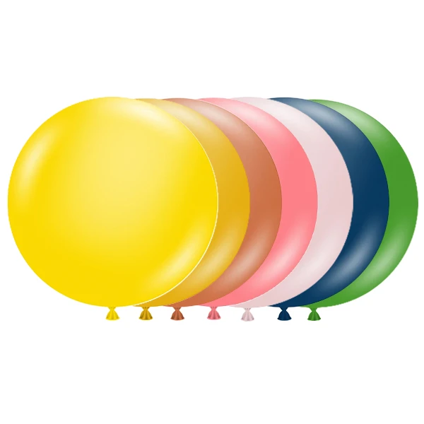 Het assortiment bestaat uit willekeurig samengestelde kleuren latexballonnen in de maat 17 inch (circa 43 cm).