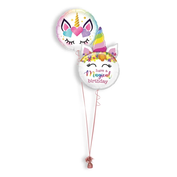 Met deze speciaal samengestelde ‘Mighty Birthday Unicorn‘ folieballontros van De Ballonnerie heeft u direct een bijzonder cadeau. De ballonnentros is circa 1,75 meter hoog en bestaat uit twee, met helium gevulde, folieballonnen die met lint aan een ballongewicht bevestigd zijn. Maak de verrassing voor de ontvanger nog groter door een speciale boodschap op een kaartje voor de ontvanger achter te laten. De zweeftijd van deze folieballonnen is circa 7 dagen. De tros bestaat uit de volgende drie folie ballonnen.